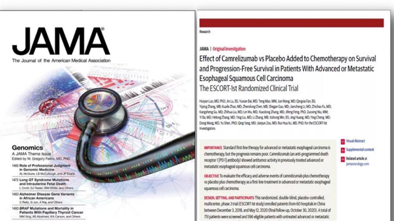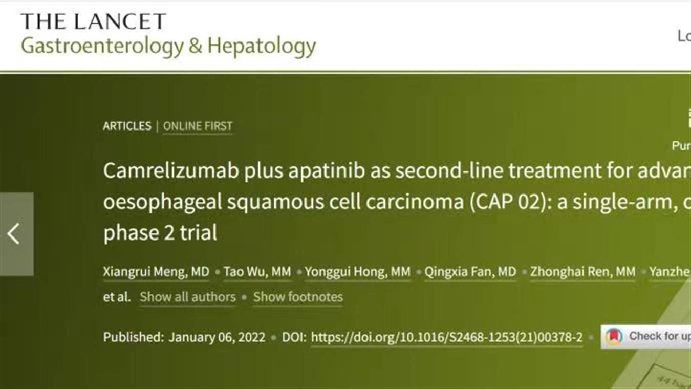 喜讯!亚美国际官方医药卡瑞利珠单抗食管癌研究再登国际顶级医学期刊